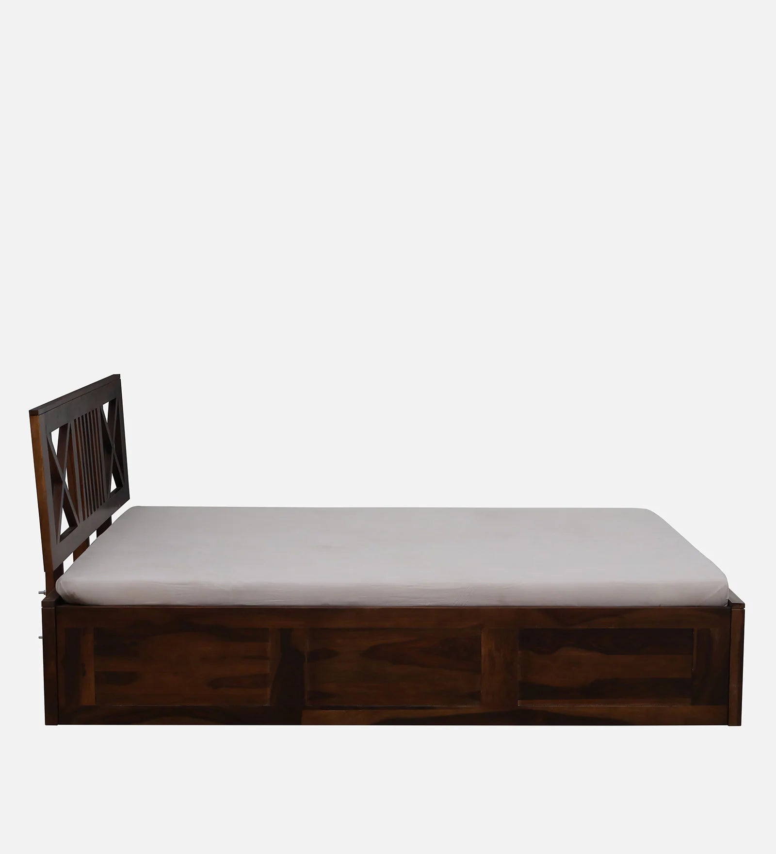 Sheesham Wood Queen Size Bed In Provincial Teak Finish With Headboard & Hydraulic Storage