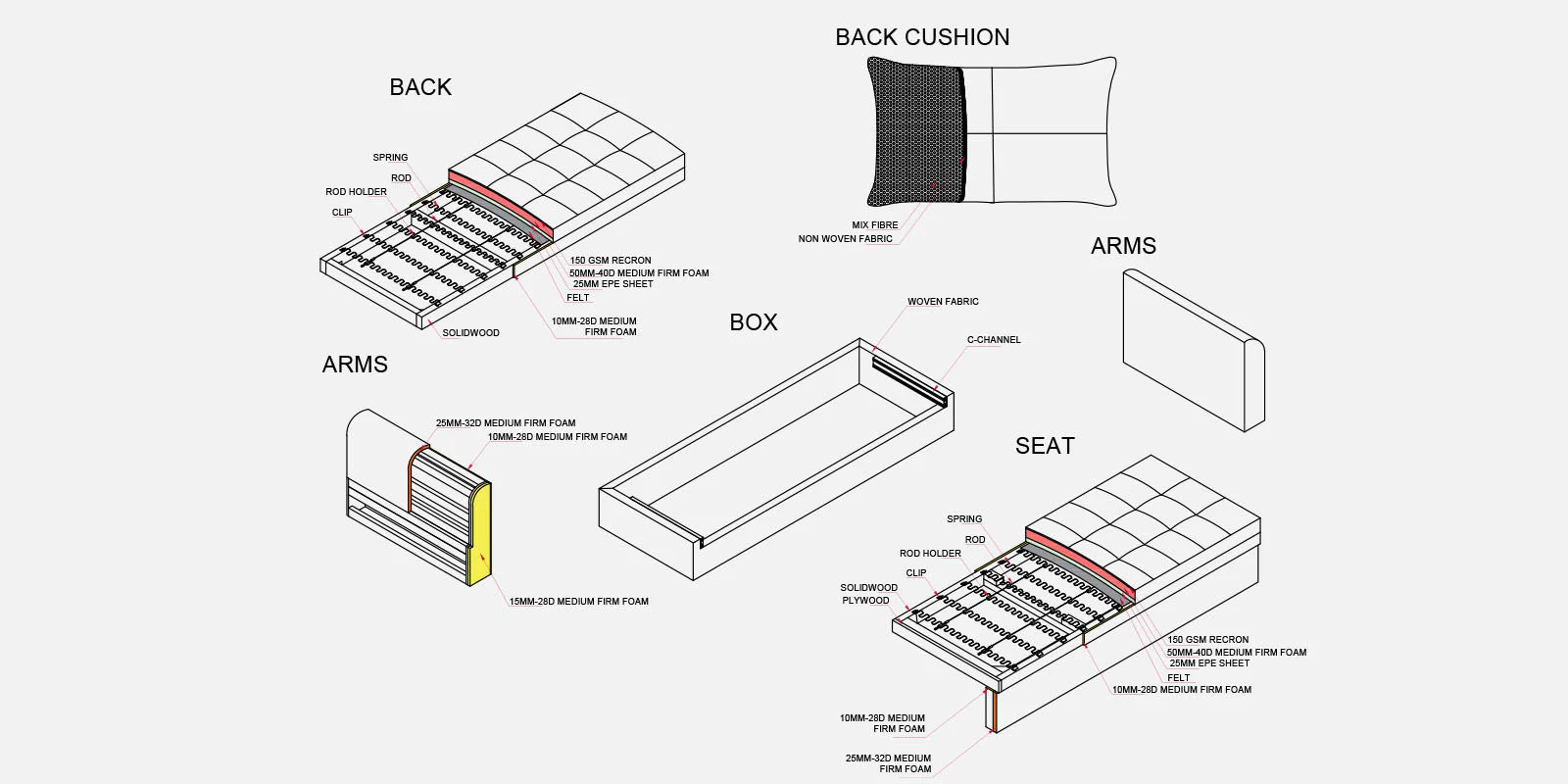 Dimensions (In Centimeters):- H 94 x W 213 x D 89